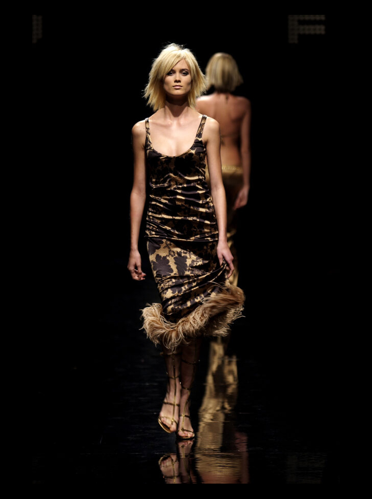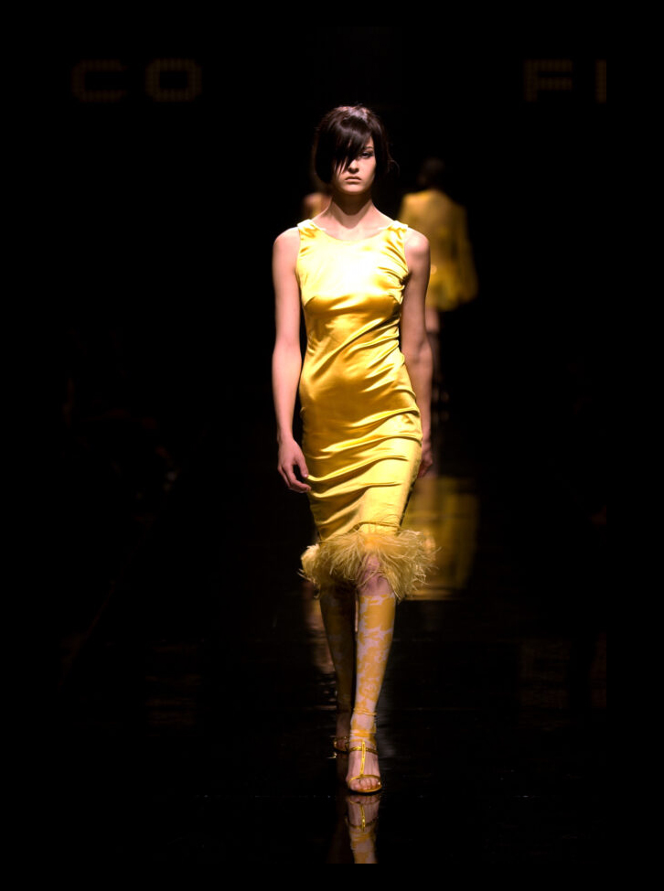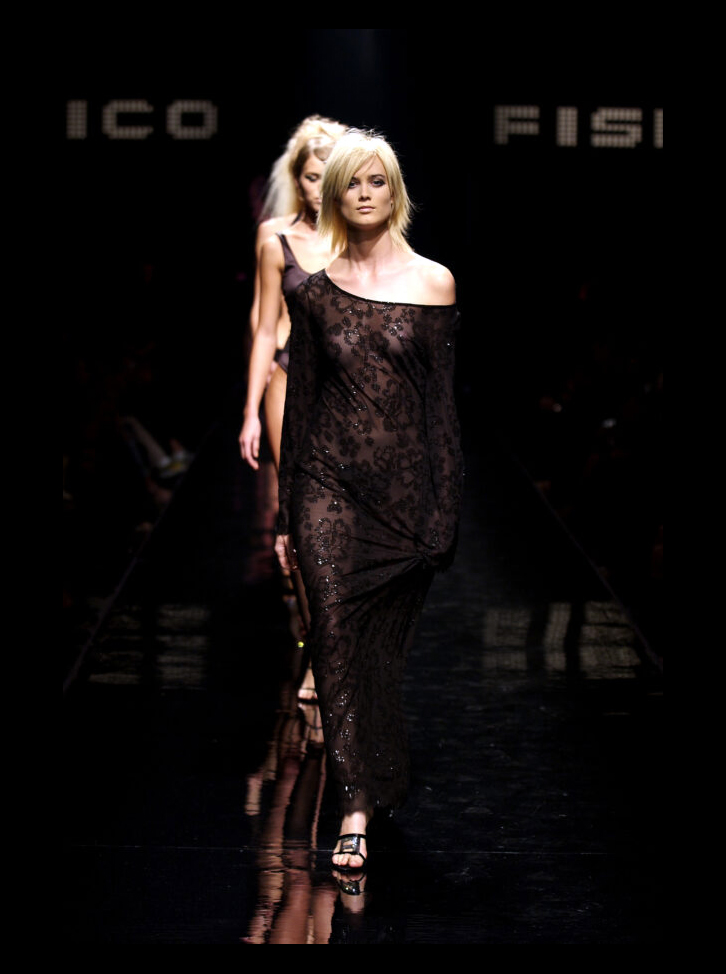 La sfilata Fisico di Cristina Ferrari del 2002 propone una collezione ispirata all’eleganza e al fascino degli anni Venti. L’atmosfera richiama lo stile sofisticato delle donne dell’epoca, con un mix di sensualità e raffinatezza.